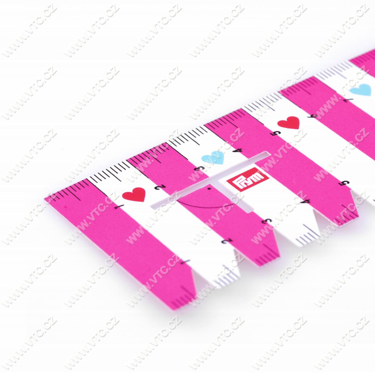 Kolekcia Prym LOVE. Ručné plastové meradlo MAXI pre krajčírske účely, škála 21 cm. S označením uhla 90 °. Drážky umožňujú presné značenie. Rozmer 230x45 mm. Čínsky výrobok, cena za 1 ks.