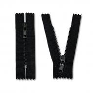 Nohavicové či sukňové mosadzné čiernené zipsy, šírka zubov 4 mm, nedeliteľné, cena za 1 ks, turecký výrobok.