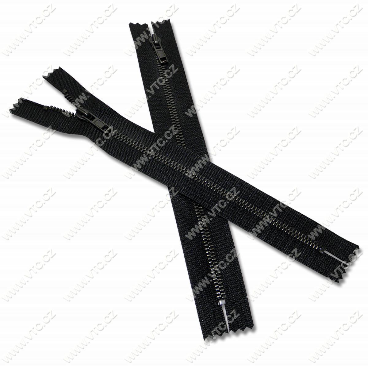 Nohavicové či sukňové mosadzné čiernené zipsy, šírka zubov 4 mm, nedeliteľné, cena za 1 ks, turecký výrobok.