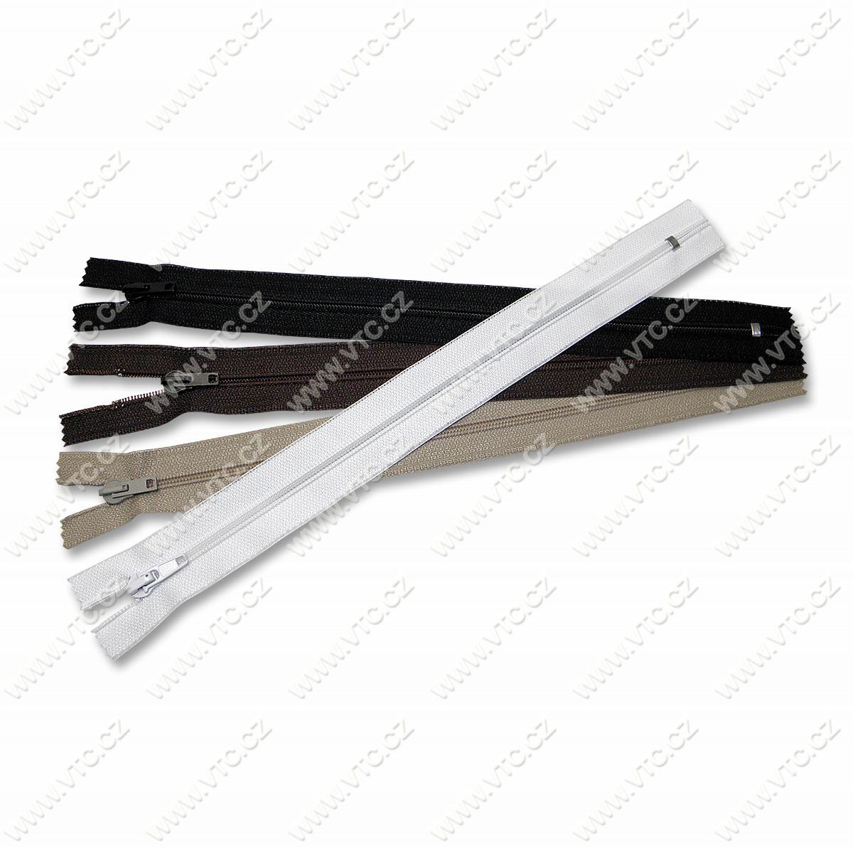 Plastové špirálové zipsy, šírka zubov 6 mm,nedeliteľné, vhodné pre stredne ťažkú konfekciu a priemyselné použitie, cena za 1 ks, český výrobok.