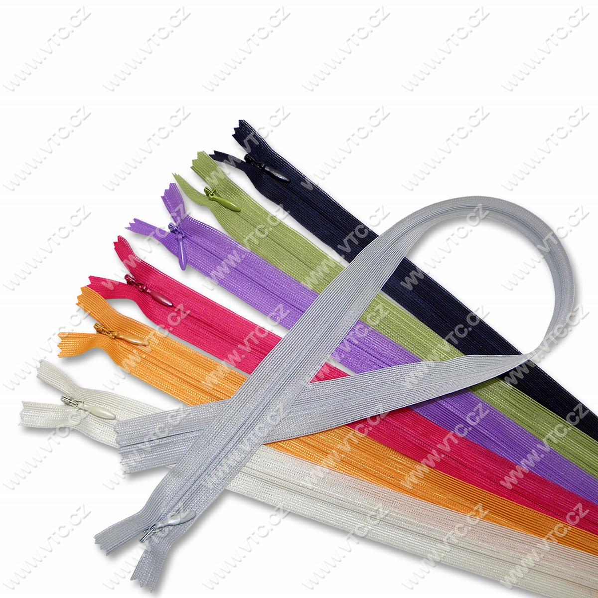 Plastové špirálové zipsy,skryté, šírka zubov 3 mm, nedeliteľné, vhodné pre ľahkú konfekciu a dámske ošatenie, cena za 1 ks, turecký výrobok.