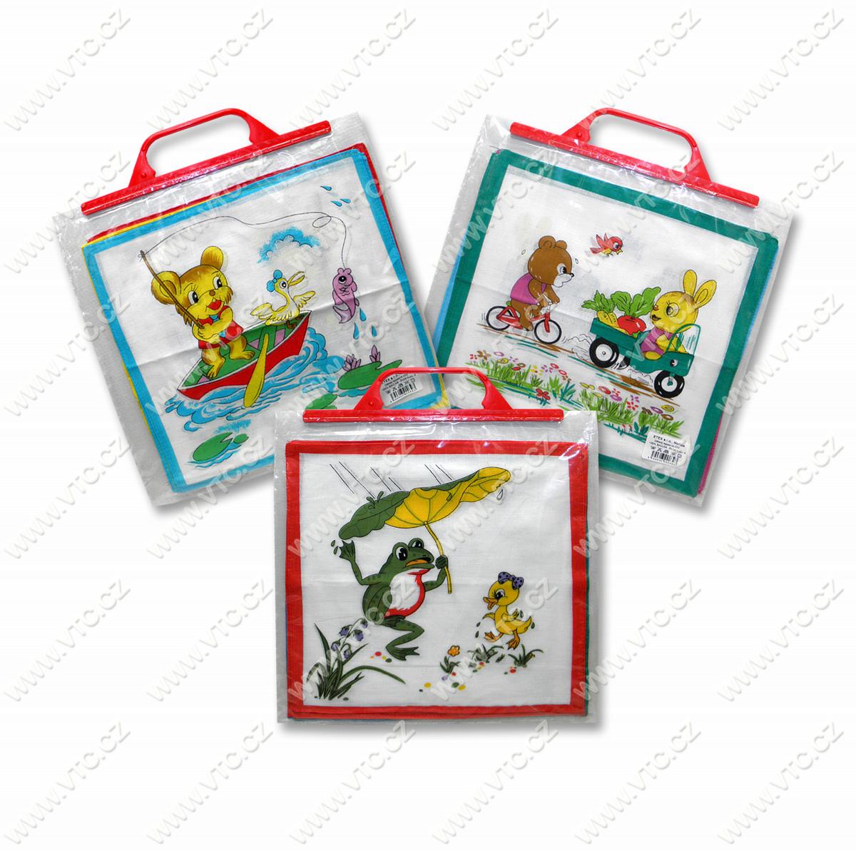 Detská vreckovka, veľkosť cca 27x27 cm, bavlna mykaná s tlačou, 6 ks v taške. Český výrobok, cena za 1 tašku.