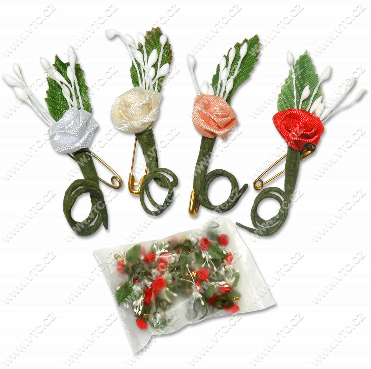 Ozdobná ružička so zatvaracím špendlíkom, výška cca 45 mm, cena za 1 ks.