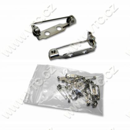 Zatvárací špendlík s príchytnou plôškou so zámkom pre výrobu brošní a iných bižutérnych predmetov, dľžka 22 mm, cena za 1 ks.