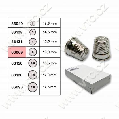 Niklovaný oceľový náprstok s dnom, veľ.0 (16mm), 36 ks v baleniu. Český výrobok, cena za 1 kus.