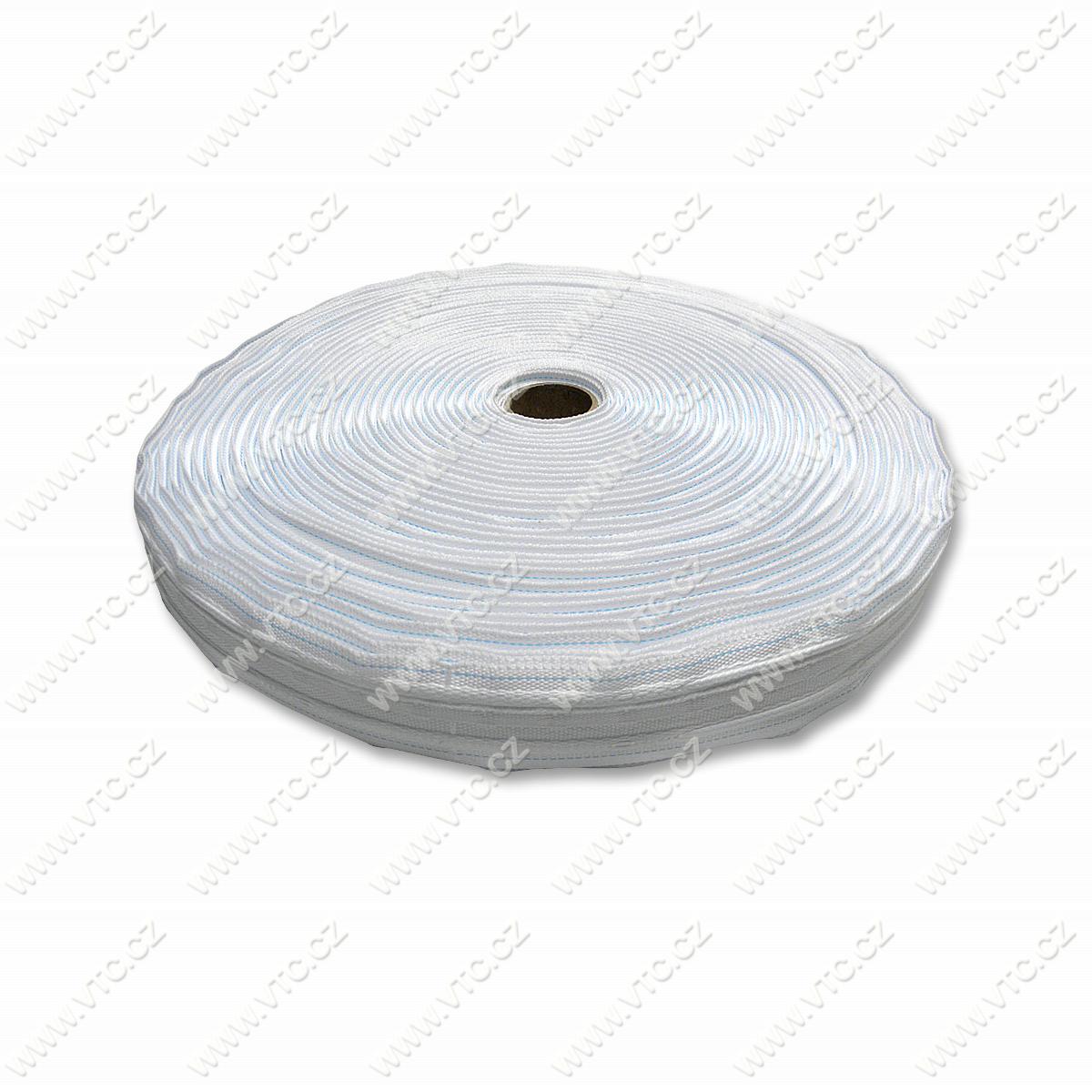 Pravidelně tužkově řasící třískladová záclonová stuha o šíři 26 mm. Po našití a nařasení připevníte záclonu či závěs pomocí žabek nebo háčků s vyuřitím kapsiček vetkaných do stuhy. Místo prošití je označeno vetkanou modrou nití. Vzdálenost skladů 9 cm. Doporučené řasení 1: 2,5. Český výrobek, cena za 1 metr.