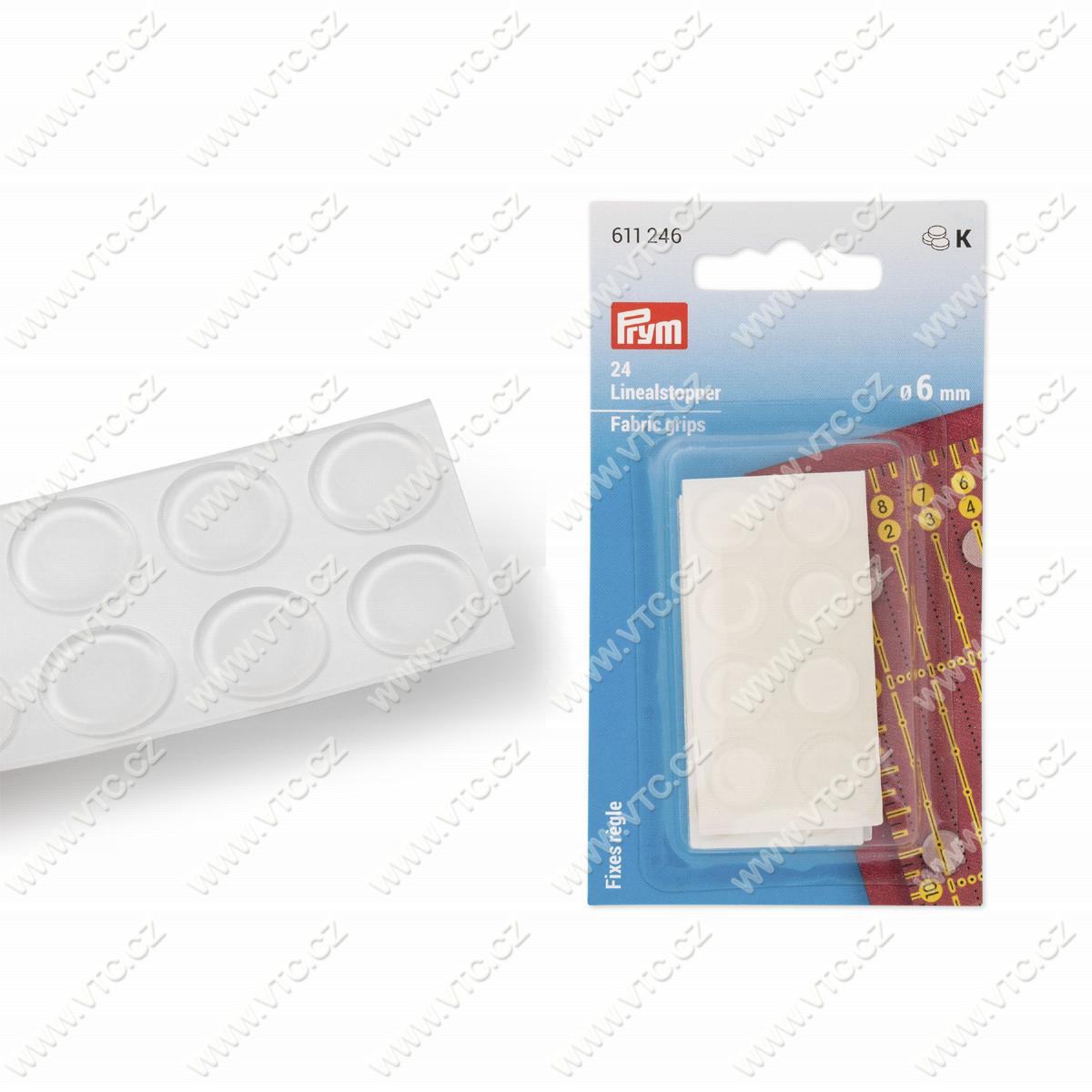 Průhledné a samolepicí silikonové tečky zabraňující klouzání pravítek a šablon zejména po kluzkých látkách. Ideální při práci s řezacími kolečky a uměleckými noži. Obsahuje 24 ks, průměr 6 mm. Čínský výrobek, cena za 1 kartu.