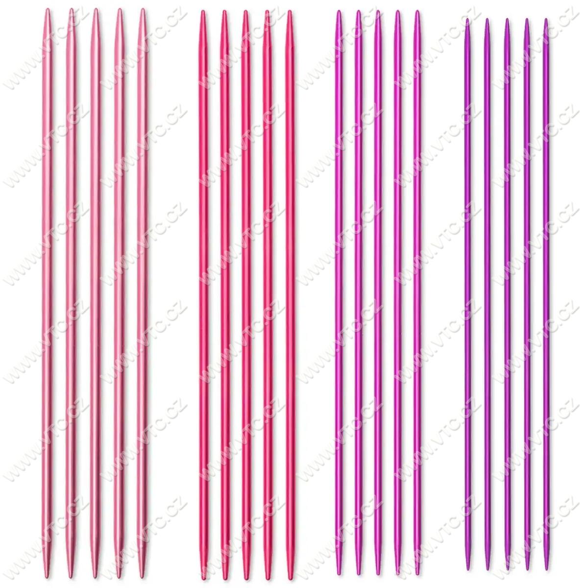 Colour collection - sada barevných hliníkových ponožkových jehlic. Obsahuje 4 velikosti: 2,5-3,0-3,5-4,0 mm, 5 ks od každé velikosti. Délka jehlice je 20 cm. Malajský výrobek, cena za 1 balení.