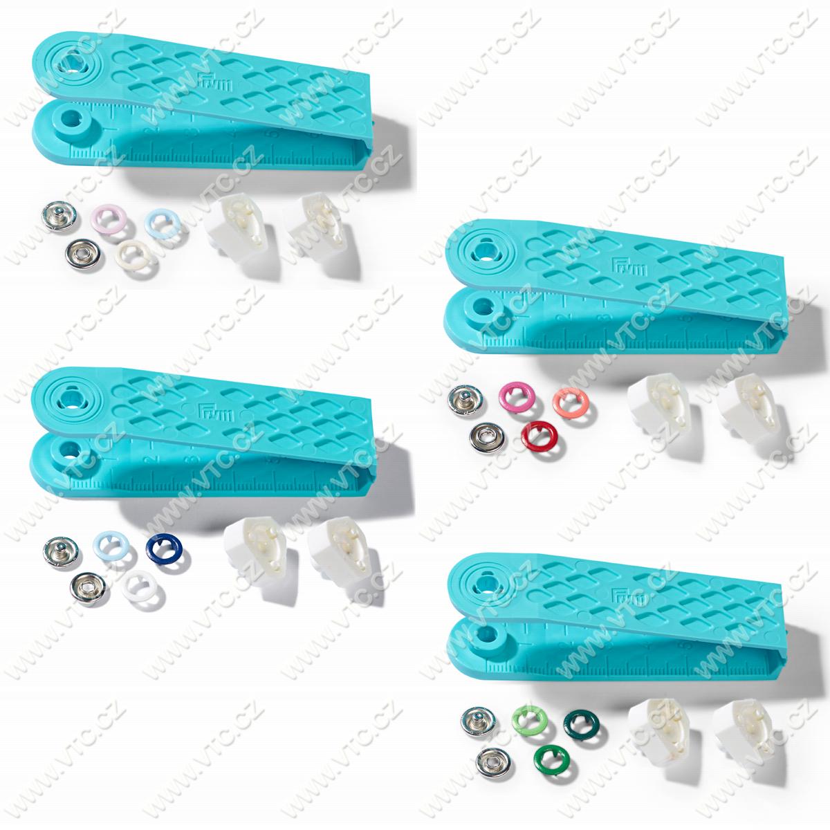 Kolekce Prym LOVE. Stiskací knoflíky JERSEY 8 mm, 21 ks na kartě, s návodem a příslušenstvím. Možné aplikovat pomocí přiloženého přípravku a kladívka, kleští Vario 39448 nebo trojnožky 39458. Německý výrobek, cena za 1 kartu.