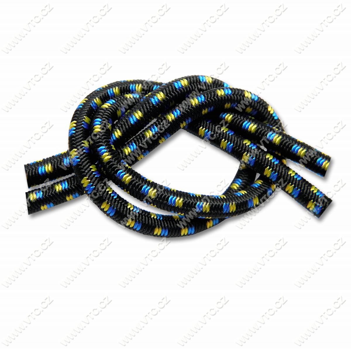 Gumové lano, šířka 6 mm, tažnost 130%. Jádro tvoří pryžová vlákna. Oplet je z polypropylénových technických vláken, stabilizovaných vůči vlivům UV záření. Gumolana lze použít k nejrůznějsím účelům (autoplachty, krycí plachty, hračky, sport, zemědělství, modelářství a pod.). Český výrobek, cena za 1 m.
