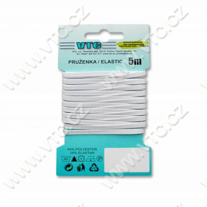 Guma prádlová, šíře cca 4 mm, tažnost 100-110 %, návin 5 m. Český výrobek, cena za 1 kartu.