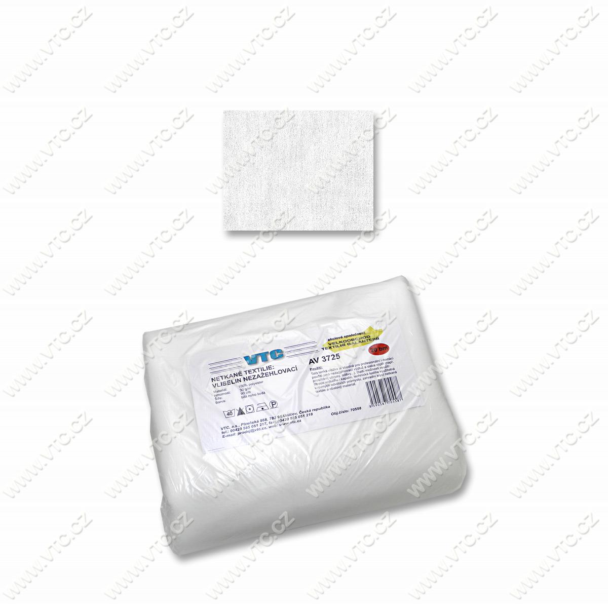 Nenažehlovací vlizelín pro univerzální použití, 30g/m, šíře 90 cm, 20 bm v balení. Cena za 1 ks.