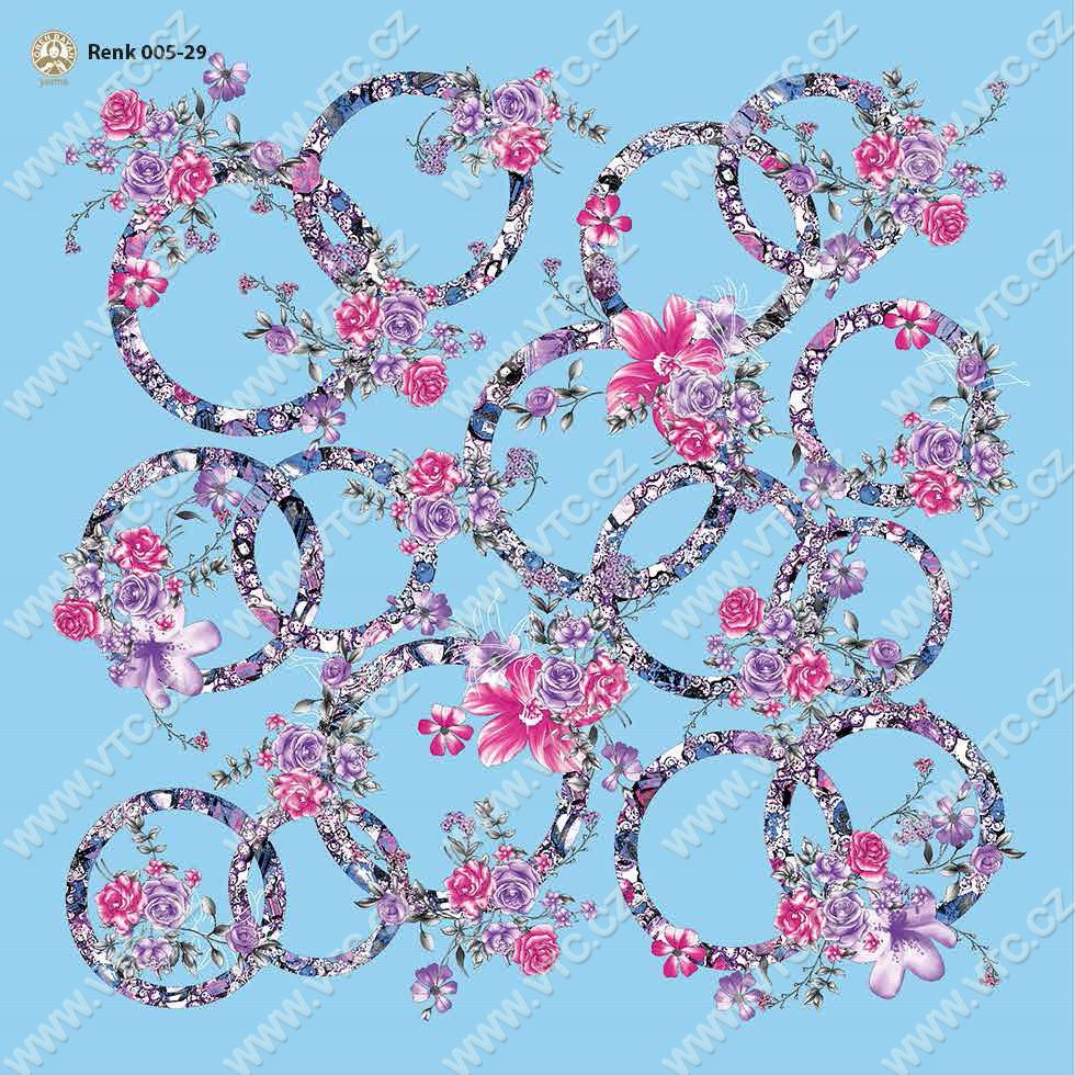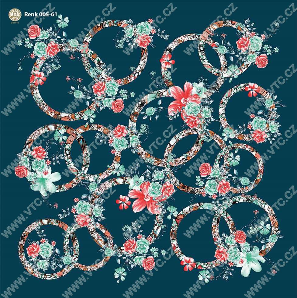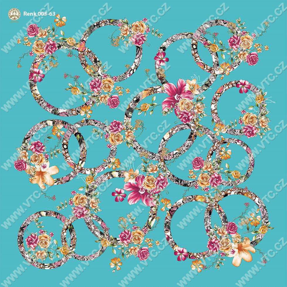 Velmi kvalitní, módní pestrý potištěný šátek, jemně parfémovaný z výroby, rozměr cca 100x100 cm. Cena za 1 ks.