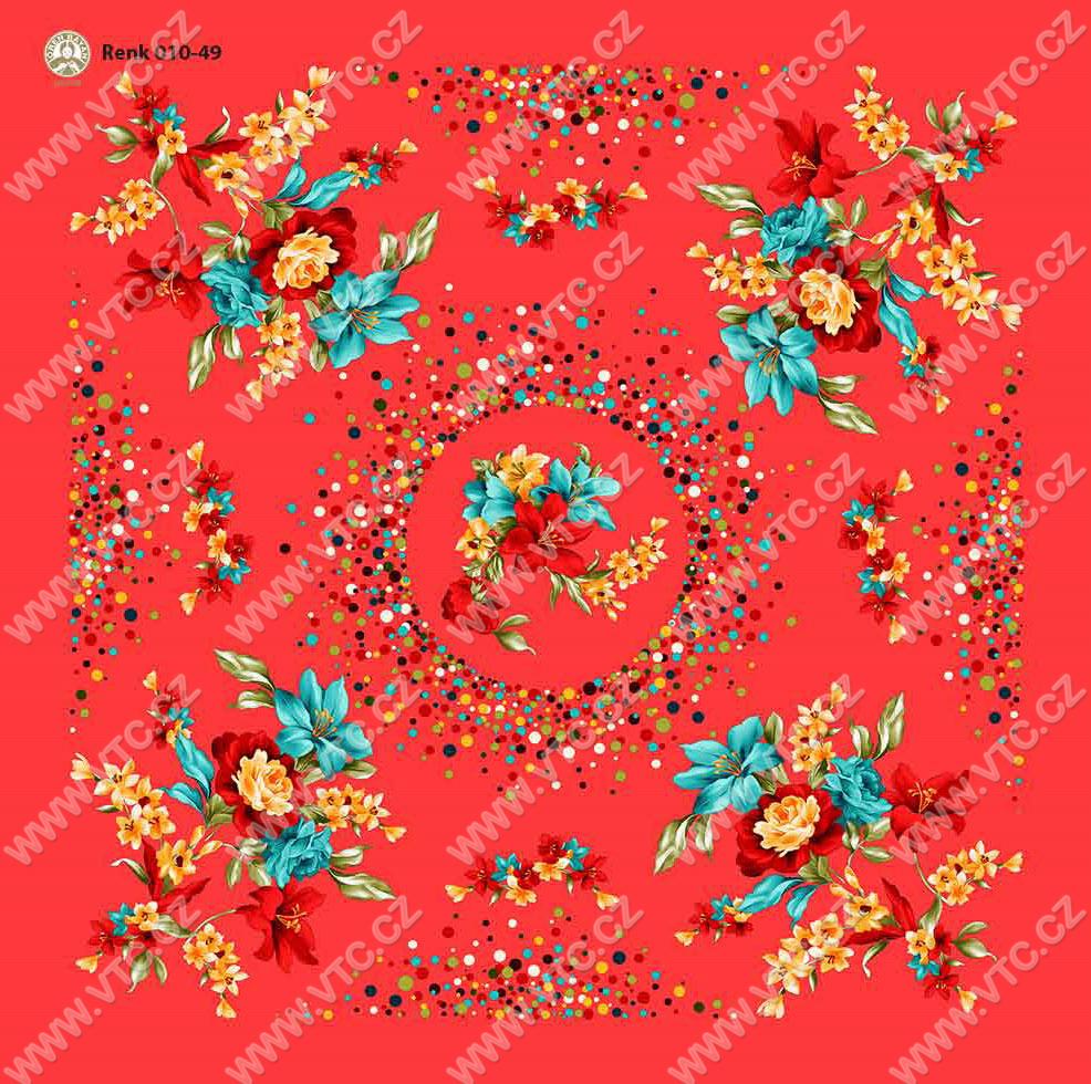 Velmi kvalitní, módní pestrý potištěný šátek, jemně parfémovaný z výroby, rozměr cca 100x100 cm. Cena za 1 ks.