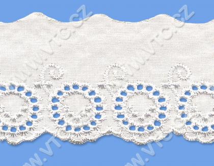 Štykování - šířka 45 mm, plátno PES+BA, výšivka viskózové hedvábí. Cena za 1 m.