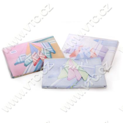 Dámský kapesník, velikost cca 28x28 cm, polobarevný, bavlna česaná, 6 ks v krabičce. Český výrobek, cena za krabičku.