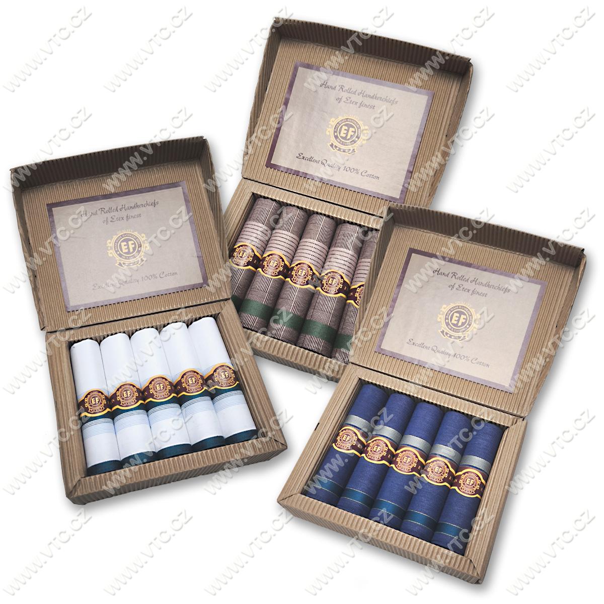 Pánský luxusní kapesník, velikost cca 42x42 cm, česaná bavlna, 3 ks v dárkové eko krabičce. Český výrobek, cena za 1 krabičku.