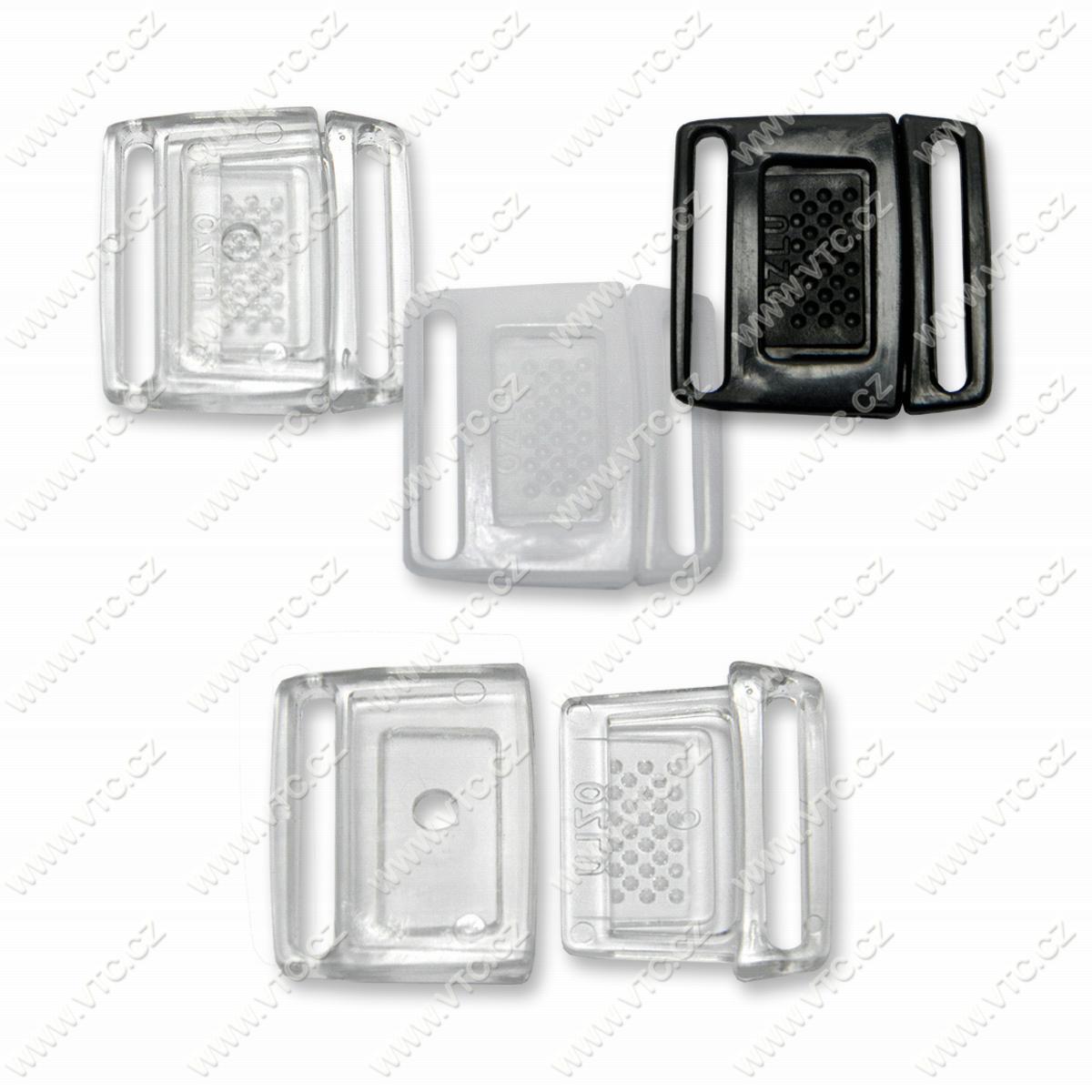 Podprsenkové zapínání vycvakávací, šíře průvleku 18 mm, celk. šířka 24 mm, výška 24 mm, cena za 1 ks.