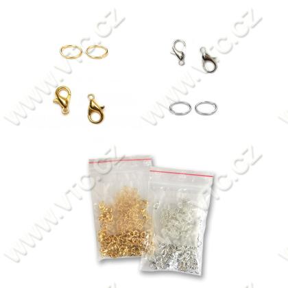 Kovové bižuterní zapínání - 10 mm karabina + 5 mm kroužek, 100 kompletů v baleni. Cena za 1 komplet.