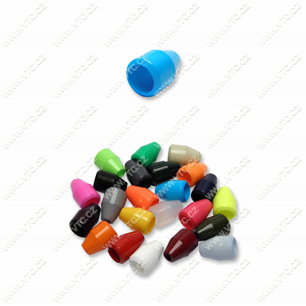MIX 50 ks plastových koncovek různých barev, dle karty 80015. Průměr 8 mm, délka 15 mm, průvlek 3 mm. Český výrobek, cena za 1 ks.