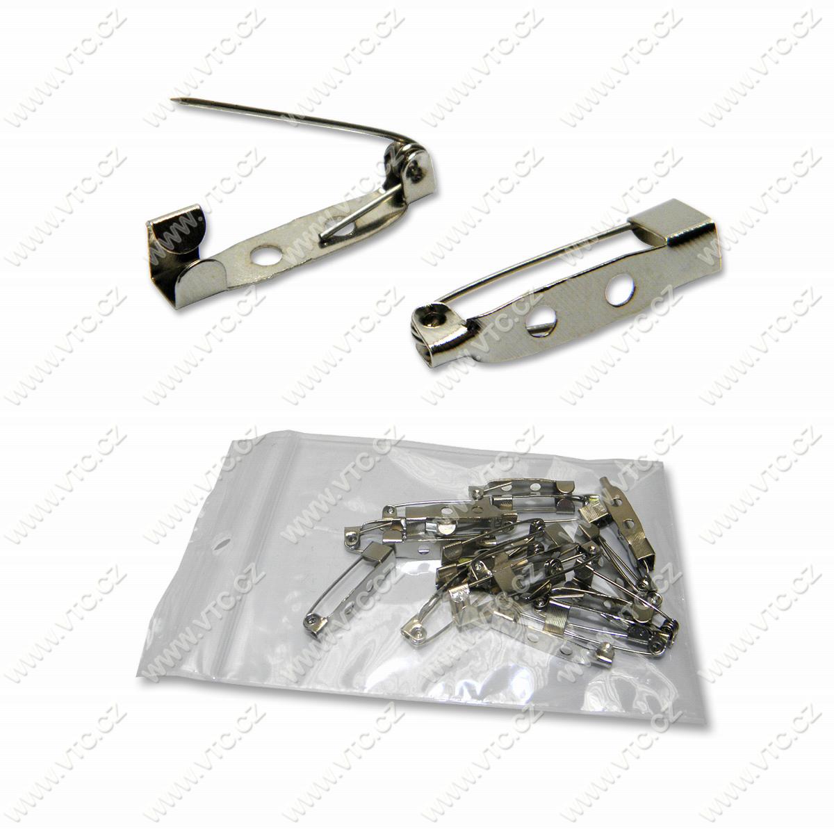 Zavírací špendlík s příchytnou ploškou pro výrobu broží a jiných bižuterních předmětů, délka 22 mm, cena za 1 ks.