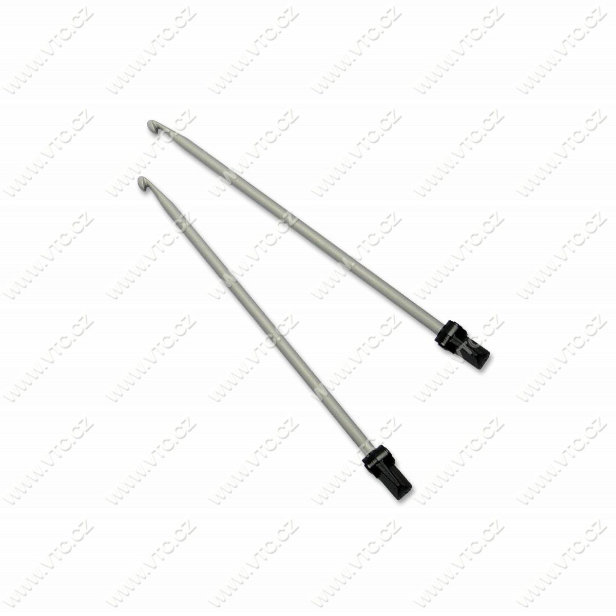 Hliníkový pletací háček s povrchovou úpravou, délka 15-19 cm, cena za 1 ks.