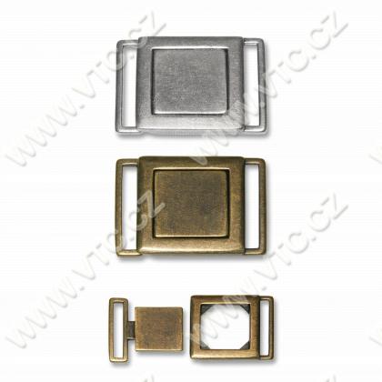 Kovová dvoudílná opasková spona, 2 kusy v balení. Rozměry 45x32x3 mm, průvlek 27 mm. Český výrobek, cena za 1 ks.