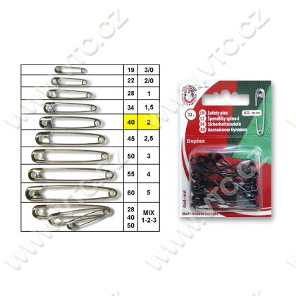 Zavírací špendlík, délka 40 mm, 12 ks v PH krabičce. Český výrobek, cena za 1 krabičku.