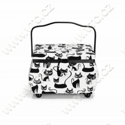 Menší obdélníková kazeta na skladování a transport šicích potřeb. Plastová vložka se čtyřmi oddíly, madlo, praktické zapínání na magnet, jehelníček a látková kapsa na vnitřní straně víka. Rozměry 27x16x17 cm. Filipínský výrobek, cena za 1 ks.